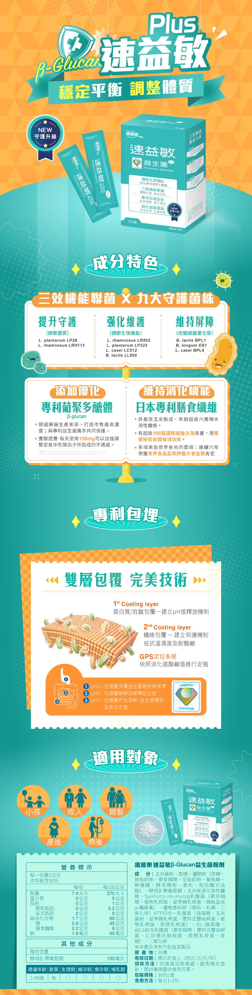 • 好安定:多國專利包埋,益菌常溫下安定性高
